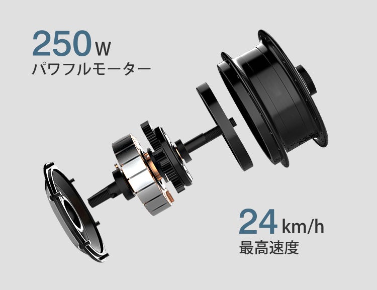 ▶250Wブラシレスモーターを採用。最大時速24キロ!