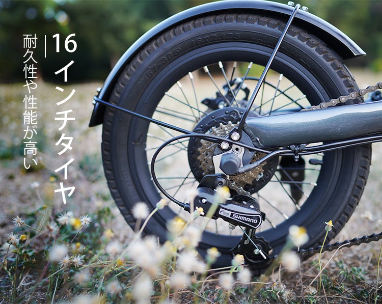 16インチサイズはタイヤの接地面積が増え、早いスピードで漕ぐものではない!高い耐久性としなやかさを感じる乗り心地を提供してくれます。