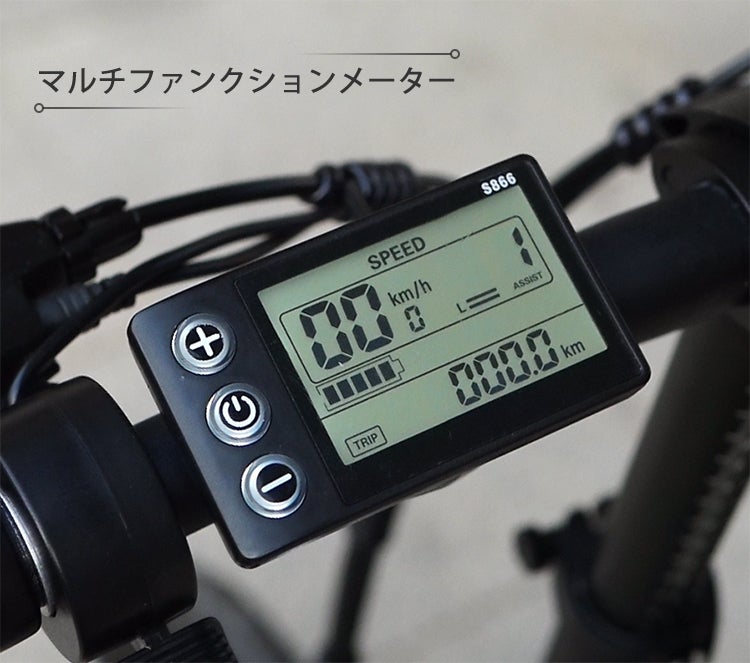 バッテリー残量、走行距離、走行スピードなど、知りたい情報が一目で分かる大型液晶を搭載。アシスト電動モードの切替えも手元のボタンで簡単に操作できます。