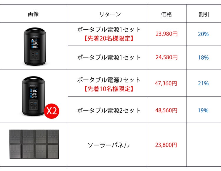 2020/06/10 11:25皆様こんにちは。雲集商事株式会社でございます。この度は、「ZEEPIN ポータブル電源」にご支援を頂き、誠にありがとうございます。本プロジェクトは、42名の皆様のお力をお借りし、総額 1,230,080 円 のご支援を賜り終了いたしました!スタッフ一同厚く御礼申し上げます。リターン商品は、2020年8月以内の発送を予定しておりますので、今しばらくお待ちくださいませ。今後の進捗状況につきましては、活動報告を通じてご報告させて頂きます。今後ともよろしくお願いいたします。 もっと見る終了まで残り8日!
