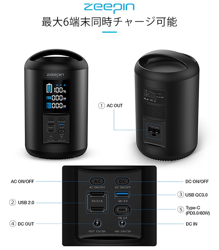 災害対策にも野外にも強い「ZEEPIN ポータブル電源」