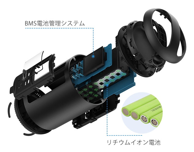 本製品の電池にはBAKバッテリー製※のリチウムイオン電池を採用しています。単一で容量2900mAhの電池を21本使用。約500回の充放電が可能です。