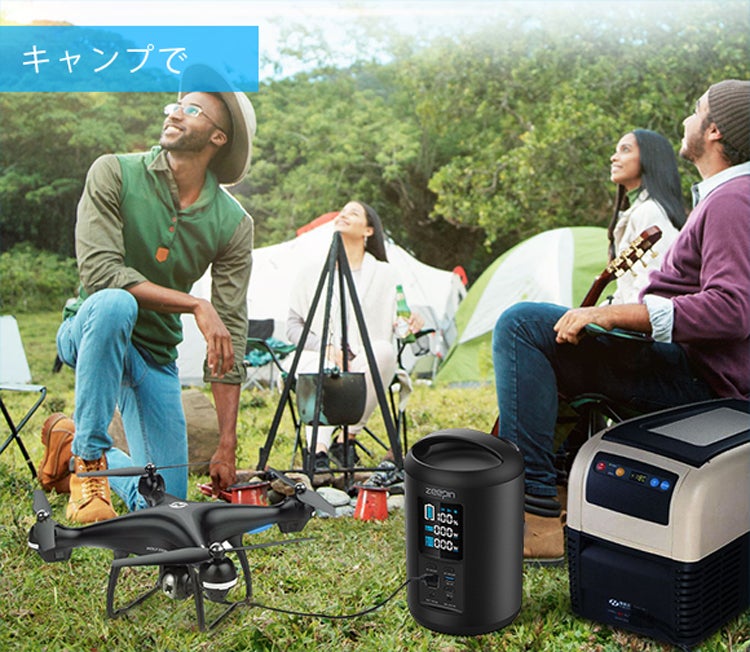 「ZEEPIN ポータブル電源」は、キャンプや車中泊で小型の冷蔵庫に給電できたり、複数のスマホを同時に充電できたりで何かと便利。また、ソーラーパネル(別売り)でも本体を蓄電できるため、電気のない野外でも安心です。