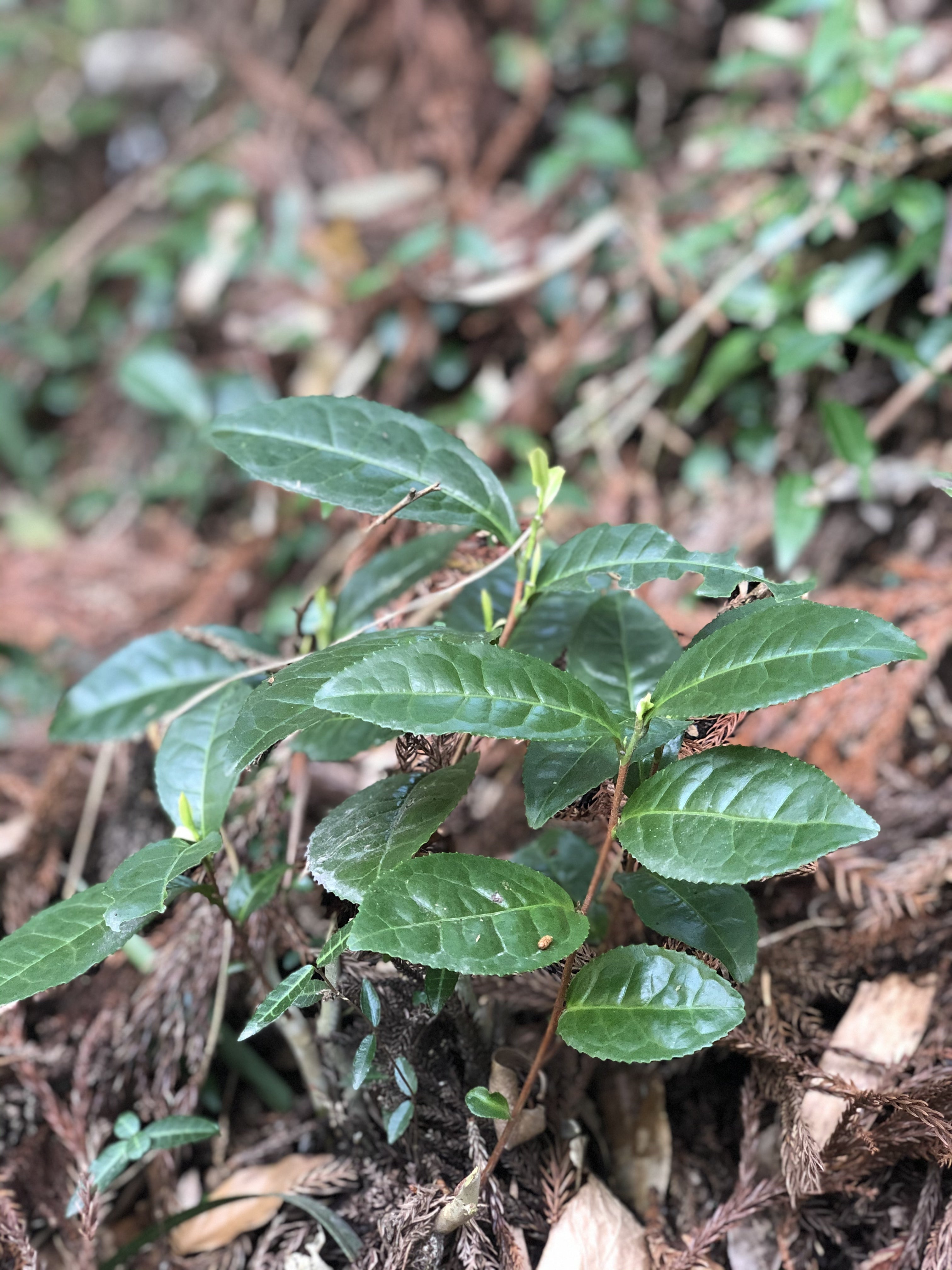 山に自生する茶の木