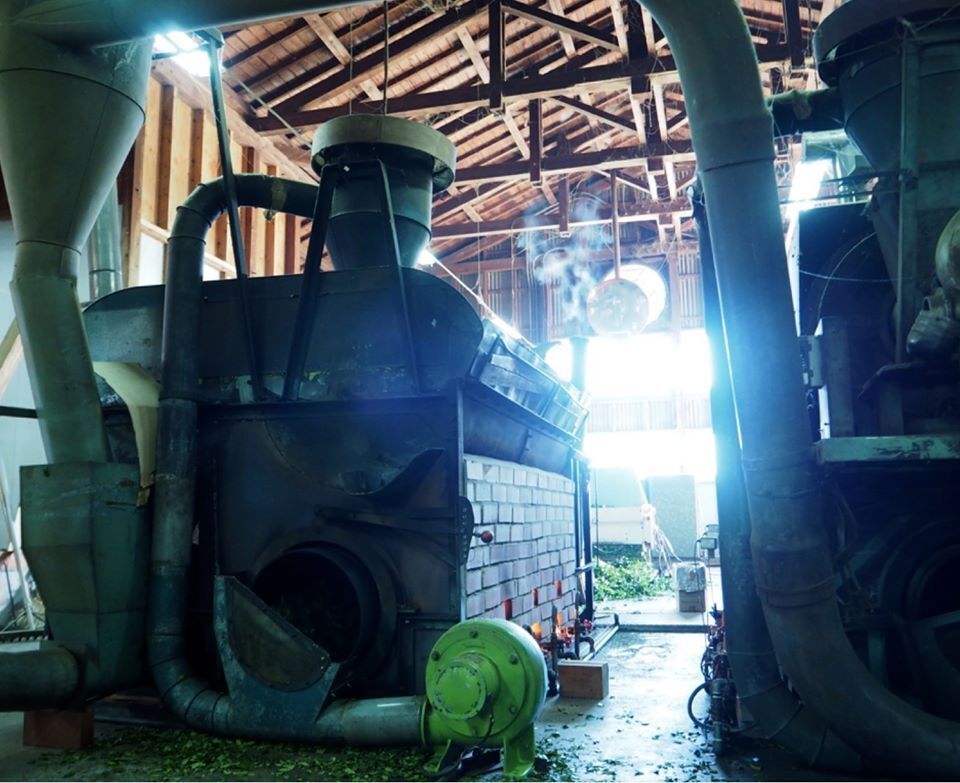 茶葉の発酵を止めるために新芽を直火の鉄釜で炒り、釜で揉みながら乾燥させていきます。300度に熱した釜で茶葉を炒るのは職人の手作業。茶葉に均一に火を通すため、手で茶葉をかき混ぜる作業は熱さとの戦いです。いまでは一部機械化していますが、やはり職人がいてこその作業は変わりがありません。