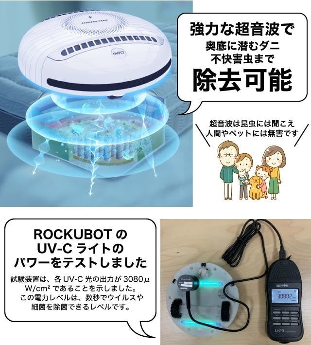 これらの結果は、ROCKUBOTが99.91%以上の細菌とダニを駆除できることを示しました。