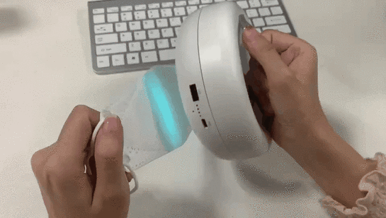 使い捨てマスクの除菌にも最適!わずか数十秒で除菌完了!!乾かす手間も洗う手間もありません。
