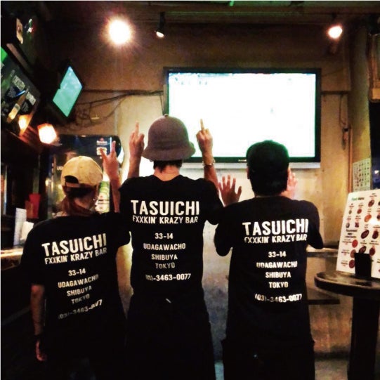 TASUICHI is a standing bar in Shibuya, Center Gai(Main street of Shibuya, Tokyo). It has been 15 years since we first opened our doors. Most of our customers are from all over the world, so no matter your nationality you will find a little piece of home at TASUICHI. When there is a big event such as The Rugby or Football World Cup, we screen the games for the enjoyment of our customers. Bringing the world together at TASUICHI.