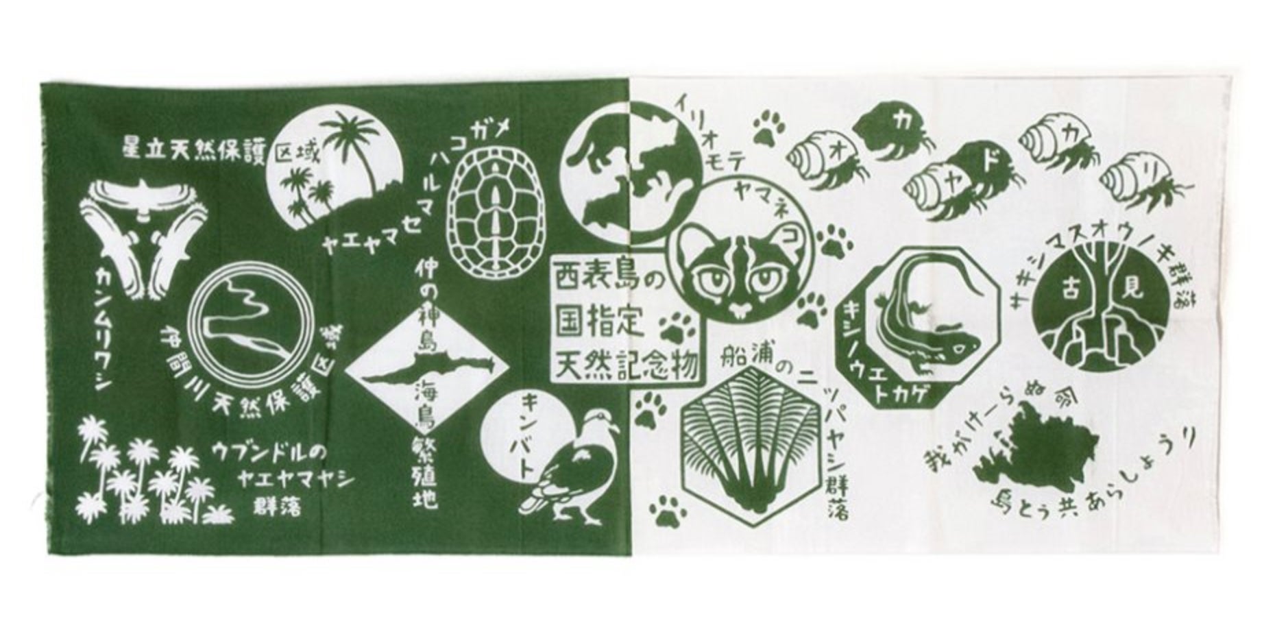 現地で活動するパートナー団体の一つである、「西表島エコツーリズム協会」のオリジナルてぬぐいです。西表島では出会うことのできる、12種類の天然記念物指定の動植物がデザインされています。この手ぬぐいを見て、使って、西表島の豊かさに想いを馳せてください。てぬぐいに同梱された解説もお楽しみに。