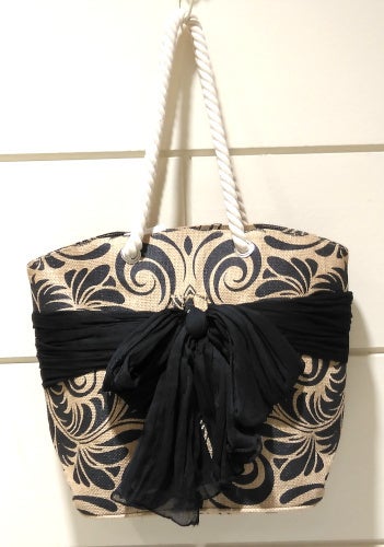 リターンでお届けする商品は、取り外し可能のストールをぐるっと巻いた、お洒落で軽い、ジュート素材のショルダーバッグです。