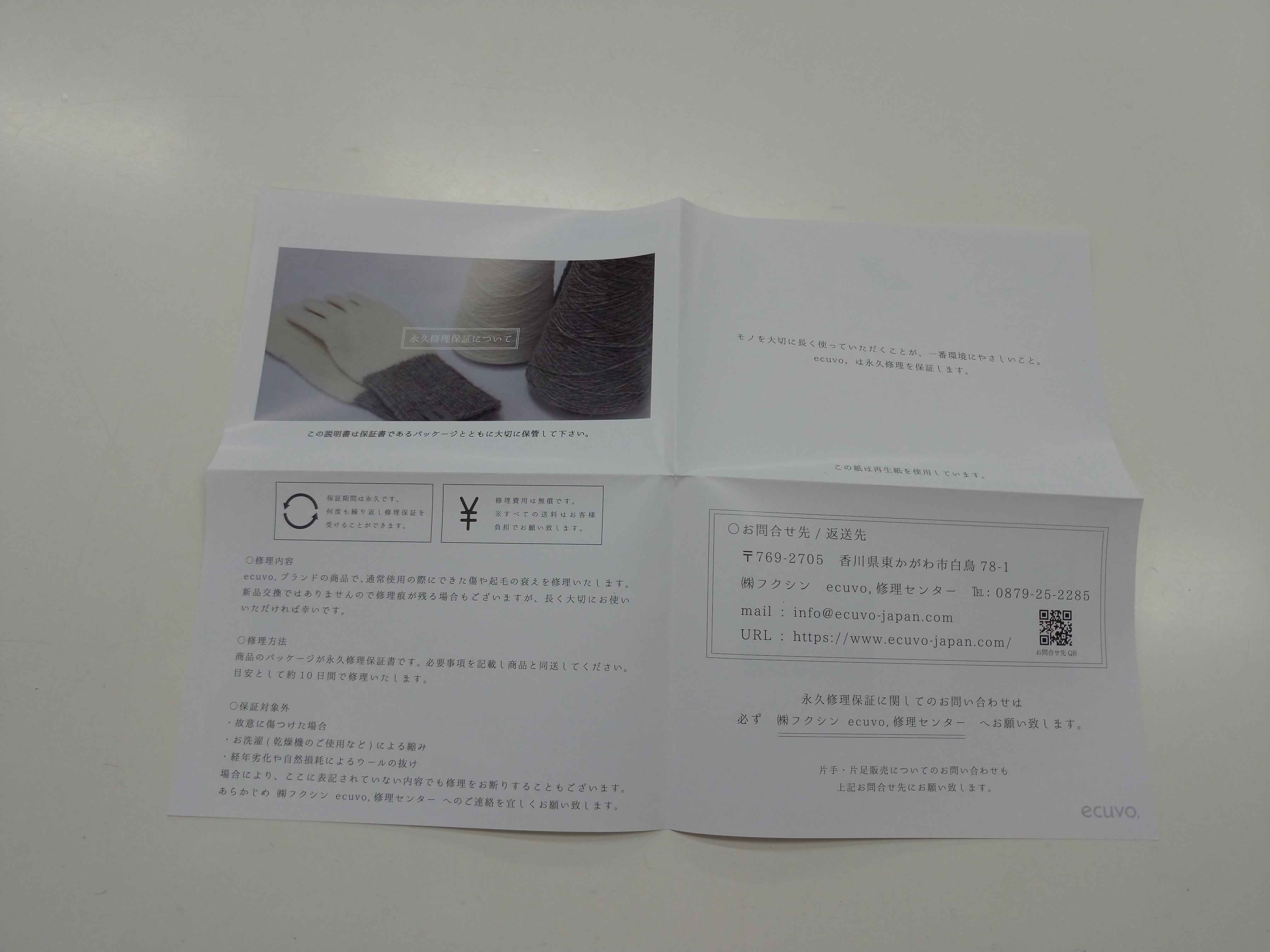 今日は「ecuvo,」の永久修理保証についてご紹介いたします。