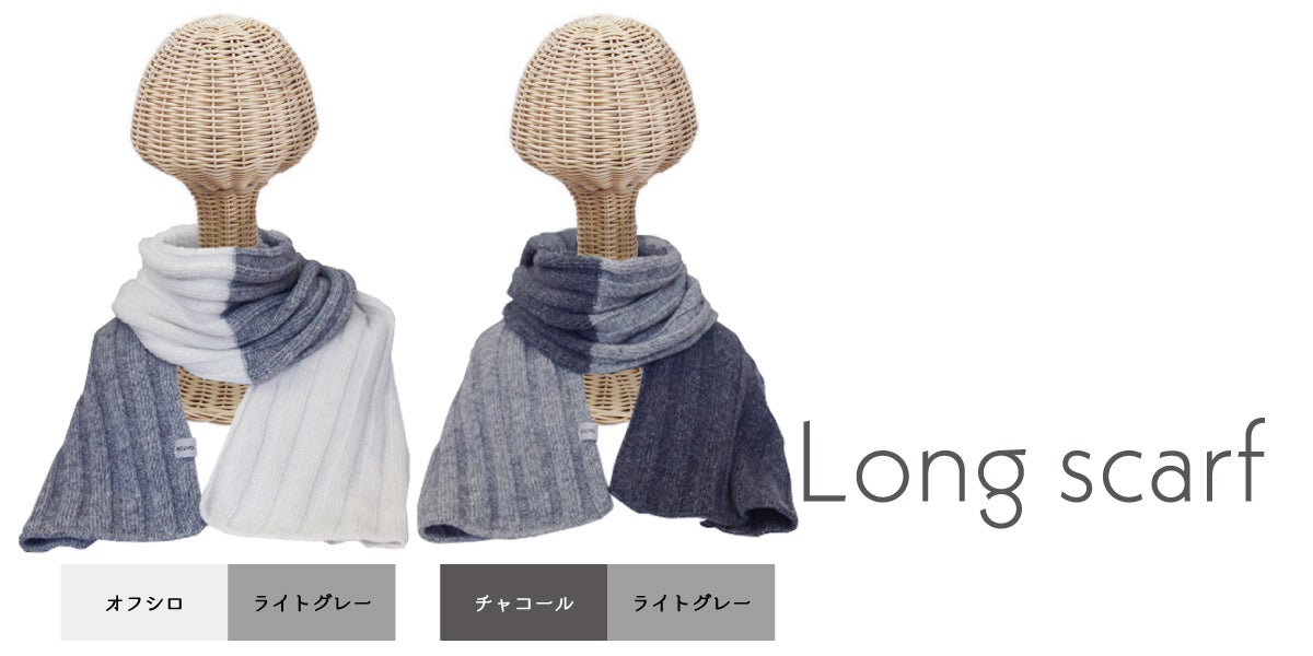 今日はecuvo,のラインナップからショートマフラー・ロングマフラーをご紹介!