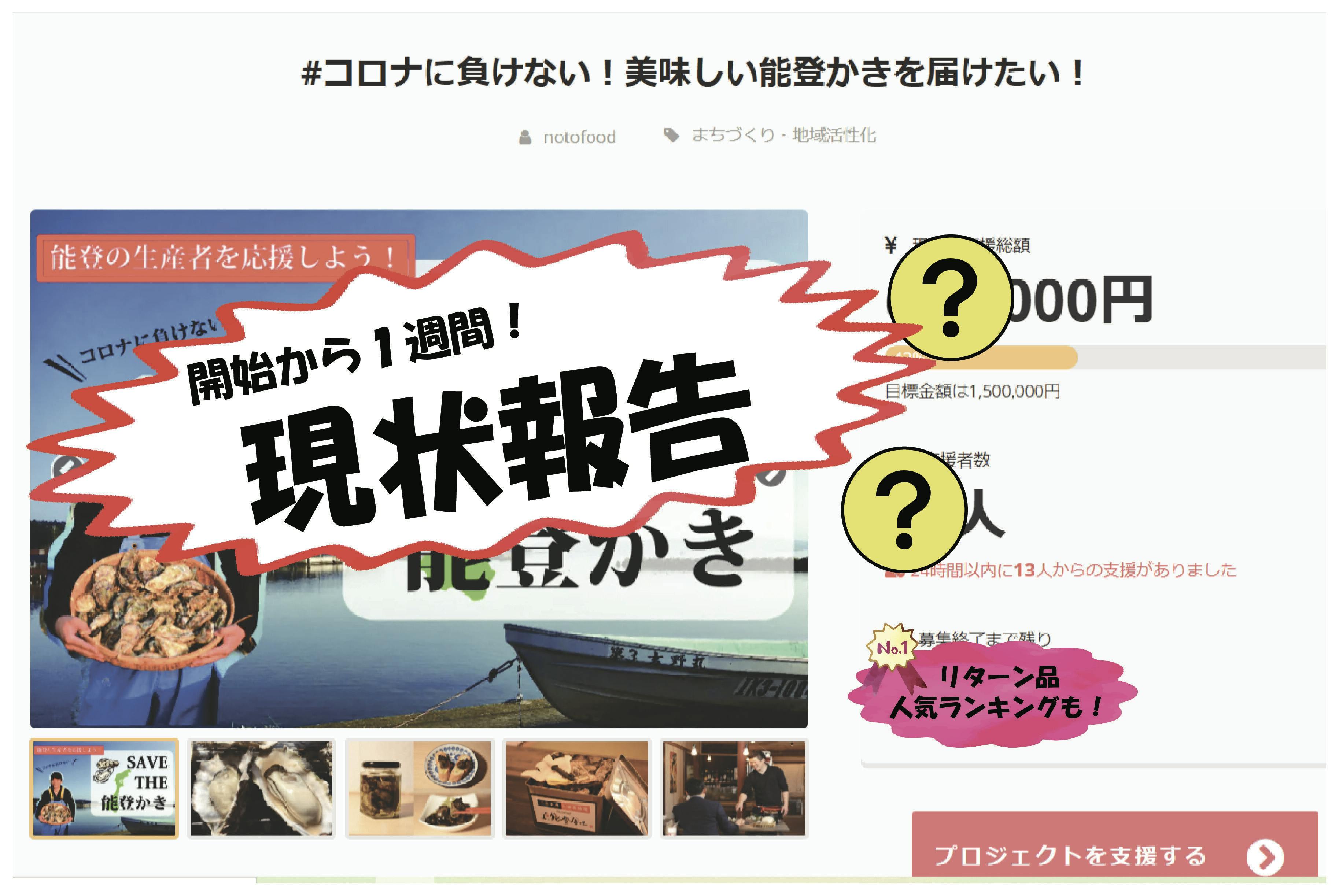 「#コロナに負けない!美味しい能登かきを届けたい!」のクラウドファンディングを開始してから、1週間が経ちました。