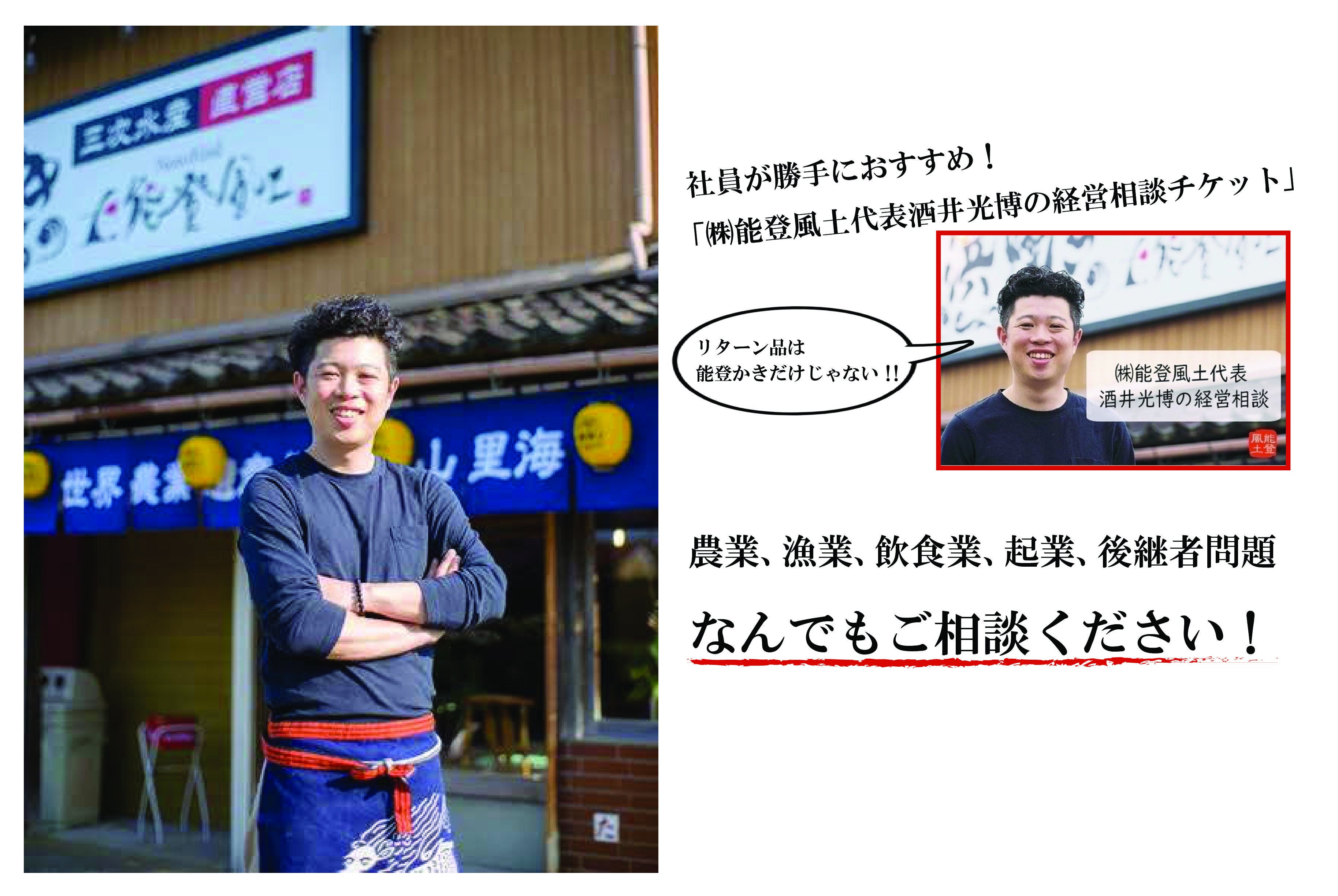 社員が勝手におすすめ!「㈱能登風土代表酒井光博の経営相談チケット」