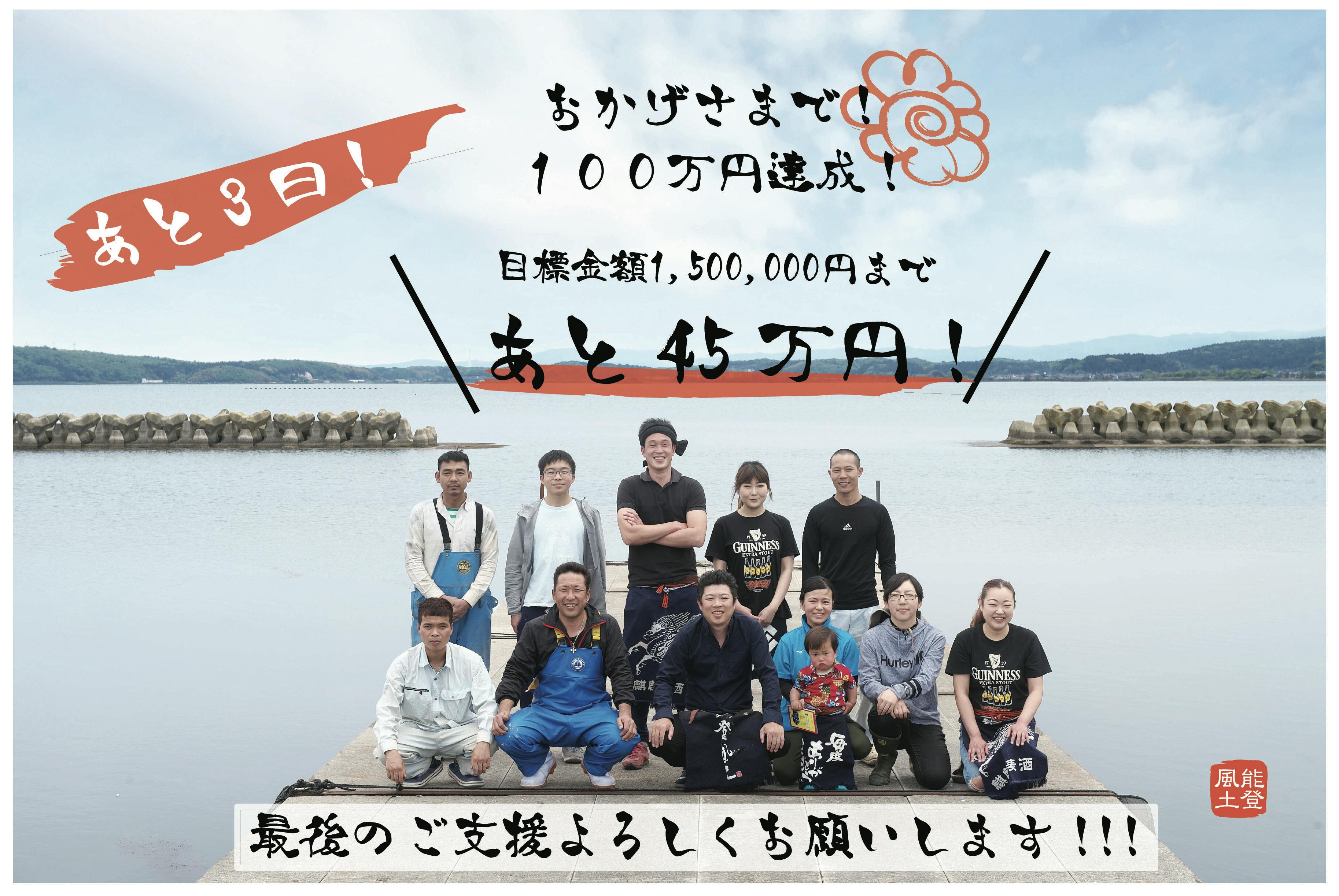 2020/05/18 00:08【終了報告】祝・目標金額150万円達成しました!「#コロナに負けない!美味しい能登かきを届けたい!」新型コロナウイルスの影響で、行き場を失った今年の『能登かき』を全国の皆様にひとつでも多くお届けするために企画したクラウドファンディング。4月18日(土)から始まった30日間の挑戦も昨日(5月17日23:59) を持ちまして終了致しました!この度はご支援ご協力を賜りまして心より(株)能登風土スタッフ一同心より感謝申し上げます。まずは活動報告にて、皆様へ感謝をお伝えさせて頂きます。本当にありがとうございました。結果は以下の通りです!ー最終結果はこちらー実施期間4月18日(土)~5月17日(日) 30日間目標金額1,500,000円Facebookシェア総件数1,885件総支援者数207人総支援額1,677,500円 (達成率111%!!!)ーーーーーーーーーーーーーーーーー今回ご支援頂いた『能登かき』は石川県能登半島七尾湾の主要な一次産業として古くから、里山里海集落の暮らしと共に栄えてきました。しかし、50年前には100社以上いた牡蠣養殖業者も今では30社ほどに衰退し、いわゆる後継者不足の危機に直面しています。今回のコロナウイルス感染拡大により廃業に迫られている事業者も出てきている中、このような形でご支援を頂けたことを決して忘れずに、コロナ収束後の原動力として『全国に美味しい能登かきを届ける』という決意を改たにこれからも取り組んで参ります。『この度は多大なるご支援を賜りまして、本当にありがとうございました!』最後にコロナウイルス感染拡大はまだまだ収束の目途が立ちません。引き続き気を緩めずに感染症対策を行い、大切な家族とご自身のお身体をどうかご自愛ください。そして皆様とこの能登の地でいつかお会いできる日を楽しみにしています。(株)能登風土 代表取締役 酒井光博 もっと見る