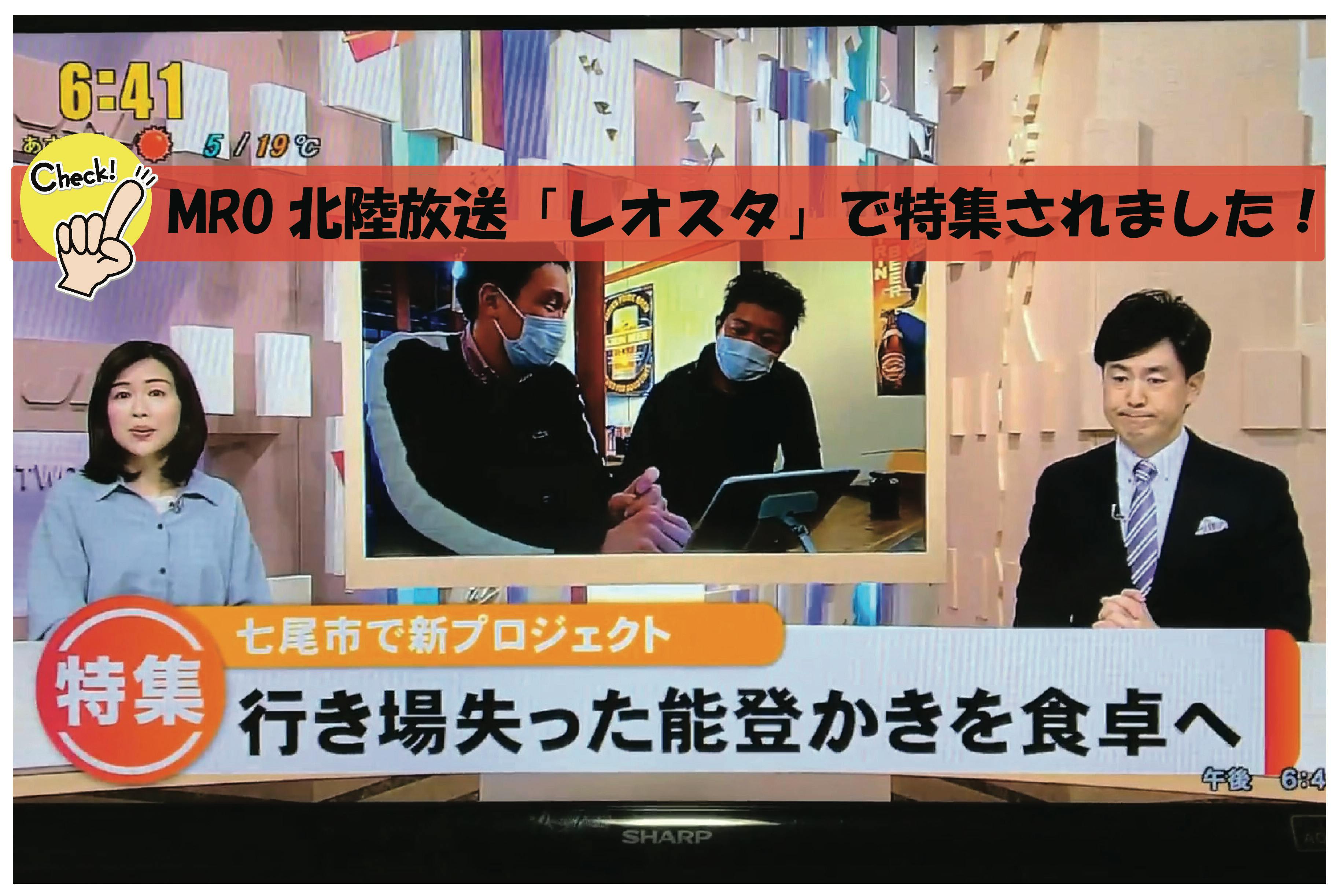 コロナの影響で行き場を失った能登かきを多くの人に届けるための挑戦を、MRO北陸放送さんが夕方のニュース番組「レオスタ」の中で特集として取り上げてくださいました!
