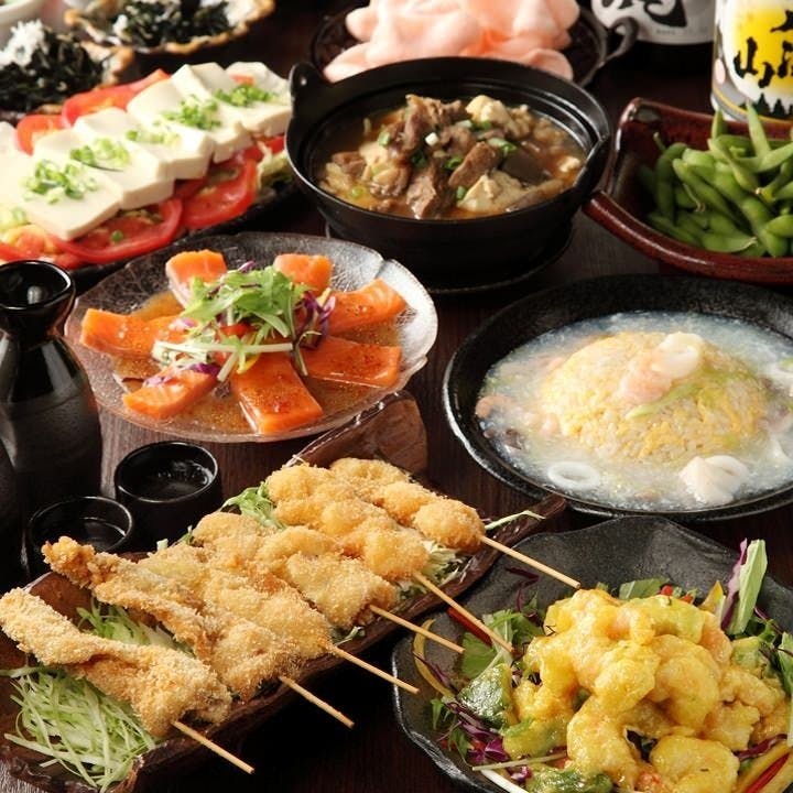 支援額3000円 【三時間飲放付・串揚げ三種盛りと海鮮料理コース 3500円相当】
