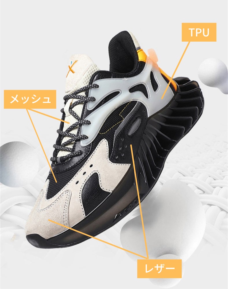 ETPU:通常のEVAと比べ、ETPU素材は、より軽量で、弾性、耐摩耗性、耐熱性と耐寒性に優れる特性を持っています。特に弾性に優れ、繰り返す衝撃による足への負担を軽減してくれます。