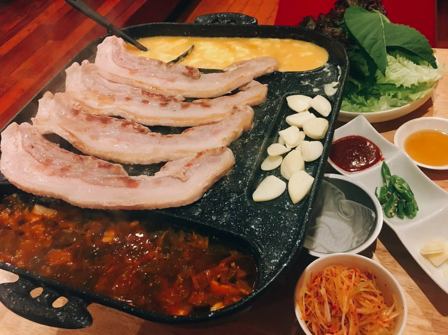 ▽メインのサムギョプサルは国産豚バラを使用していて、ヘルシーでとても美味しいです。