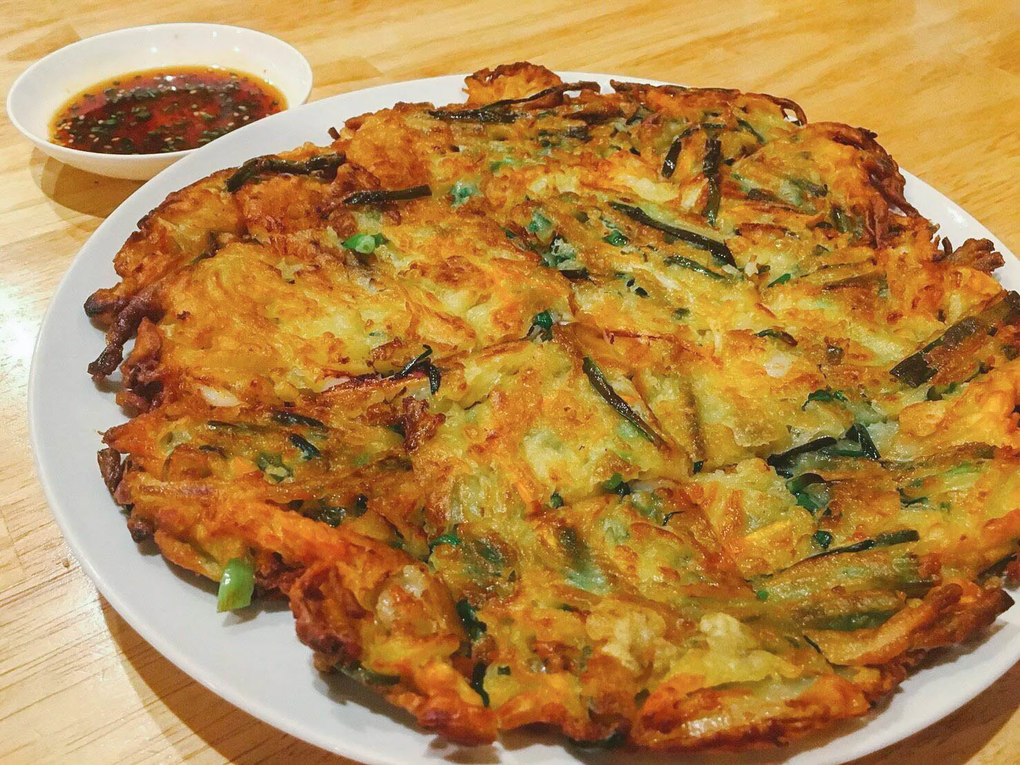 ▽はんめんちの海鮮チヂミは大人気メニュー。外はさくっとしているのに中はもちもちではまります。