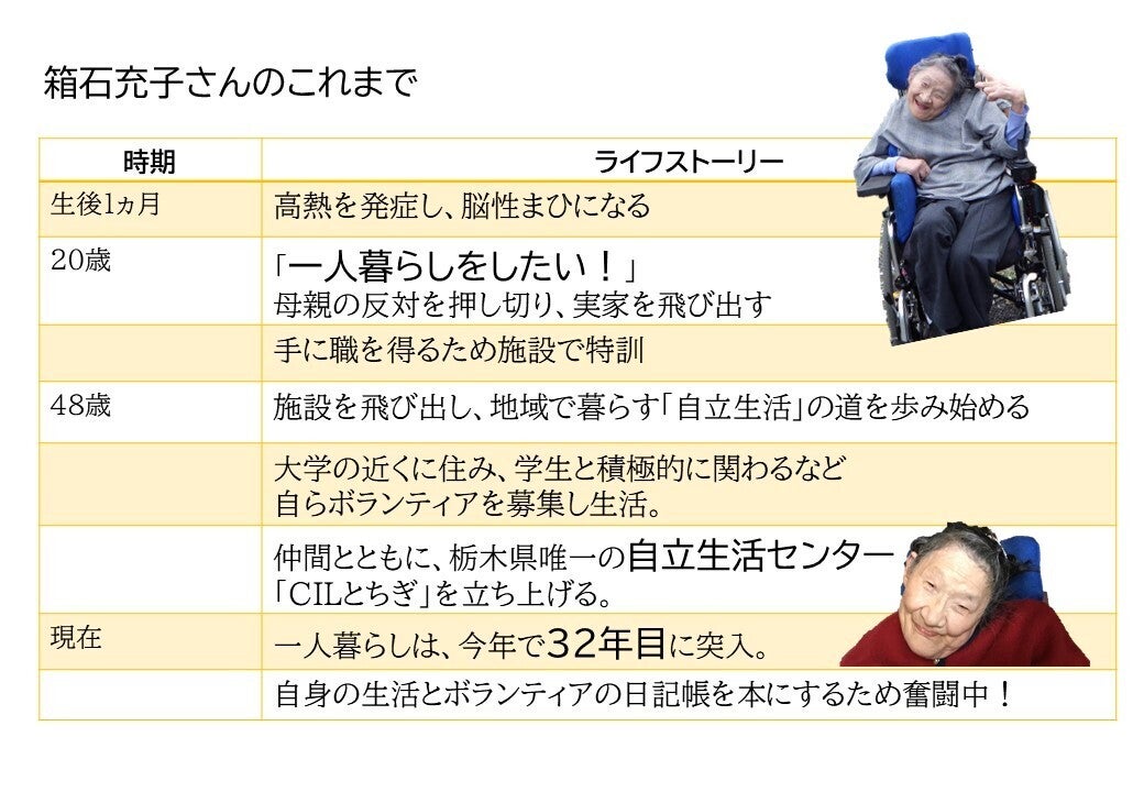 箱石さんはこれまで、自立生活を自分の手で切り開いてきました。