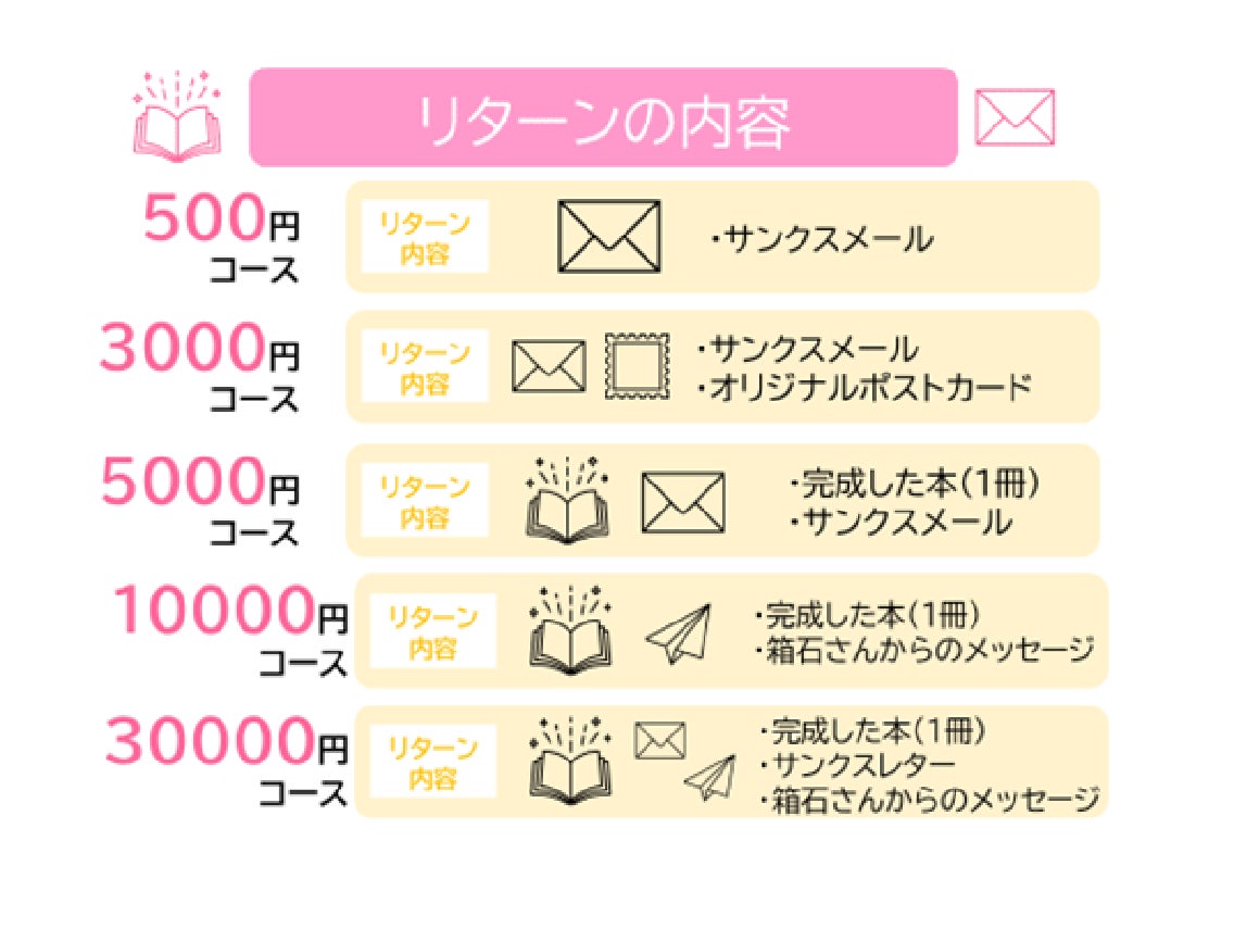 出版費用とリターンの郵送費等に使わせていただきます。