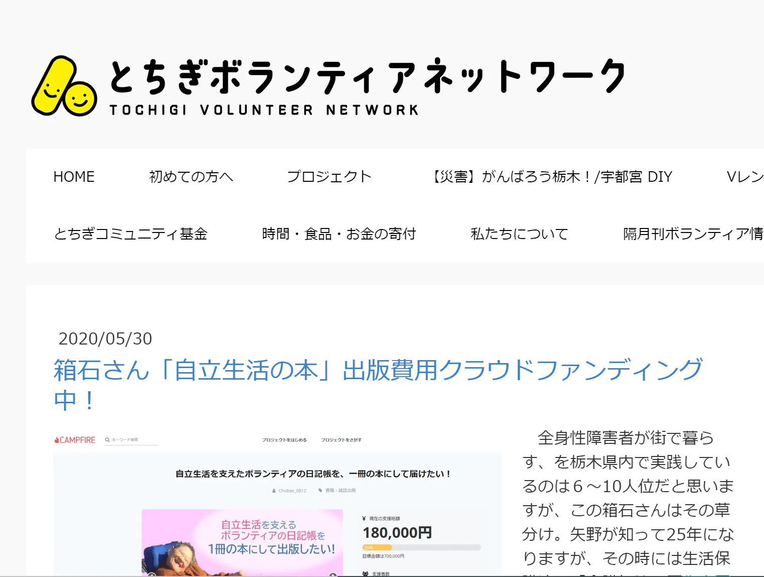 ご紹介が遅れましたが、認定NPO法人とちぎボランティアネットワークが5/30にHPにて、箱石さんの挑戦を取り上げてくださりました!ありがとうございます。