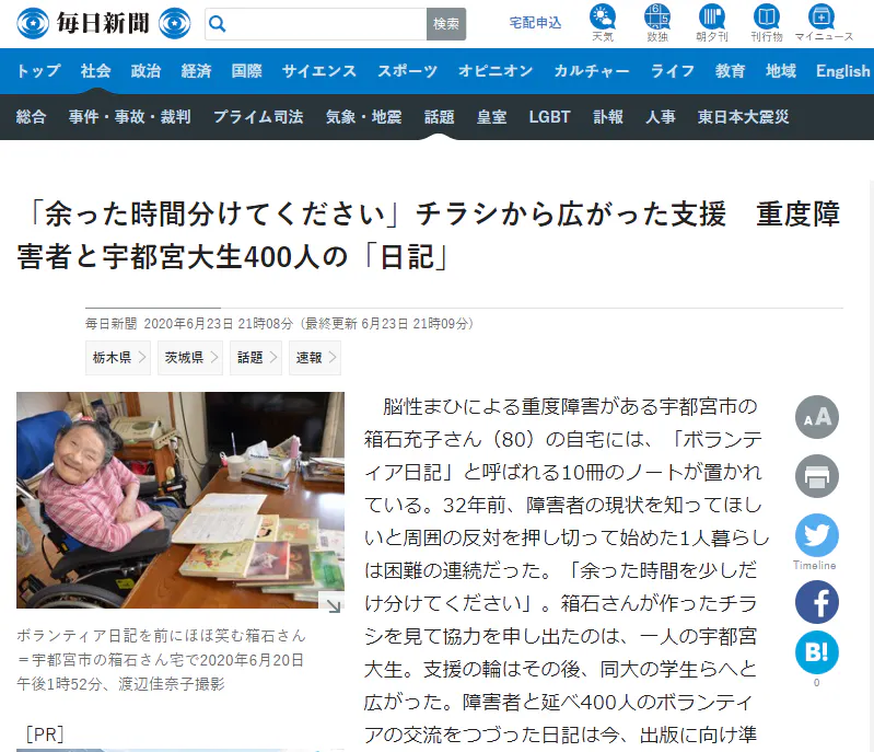 ●毎日新聞 栃木版(2020年6月23日)