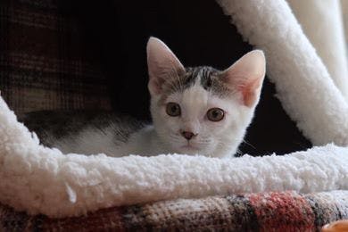 一度は仲良しの兄弟猫と一緒にトライアル(譲渡前のお試し期間)へ行きましたが、里親様のご都合で戻って来ました。