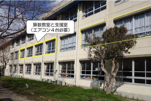 現在、東ときわ台小学校には、算数教室と支援室、そして図書室や音楽室などの特別教室にエアコンが設置されていません
