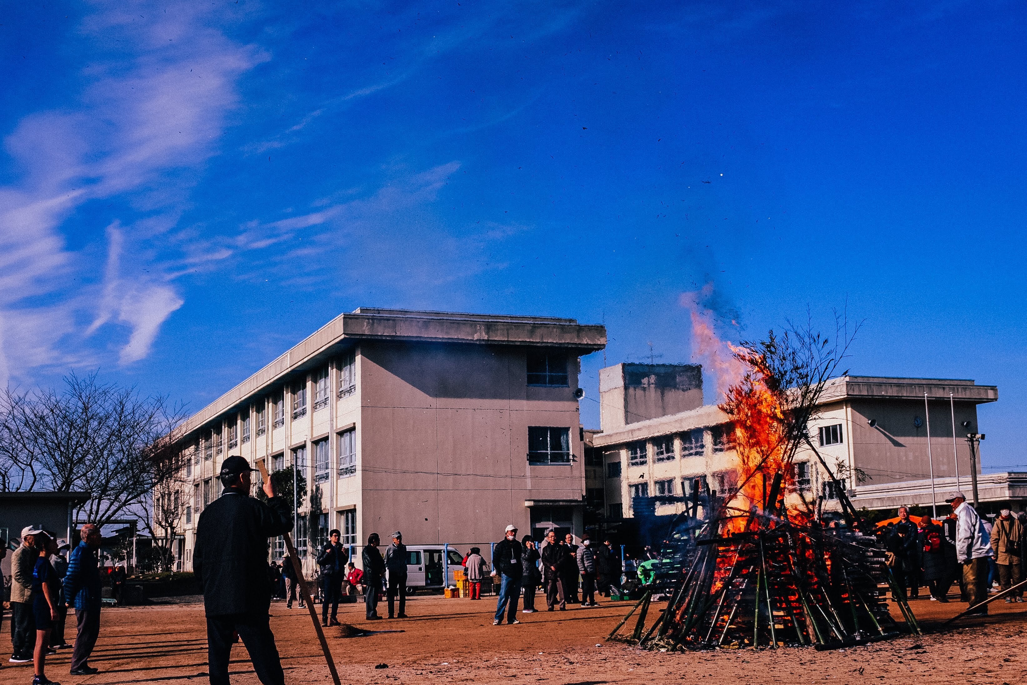 また、毎年1月には小学校のグラウンドを解放し、無病息災を祈る「どんと焼き」が行われます。町の方々による出し物や屋台などが出店し、新年の伝統行事として伝承されています。
