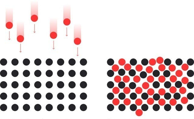 高真空下で施されるこのプロセスは、カトラリーにコーティングをしないので、はく離の危険性が無く、カトラリーを加熱せずに、ビームの運動エネルギーを用いてイオンを浸透させるため、チタンの容積が変化することも高温処理に伴うリスクもありません。イオン注入技術は、人口関節、チタン製技肢などの医学的用途にも使用されています。