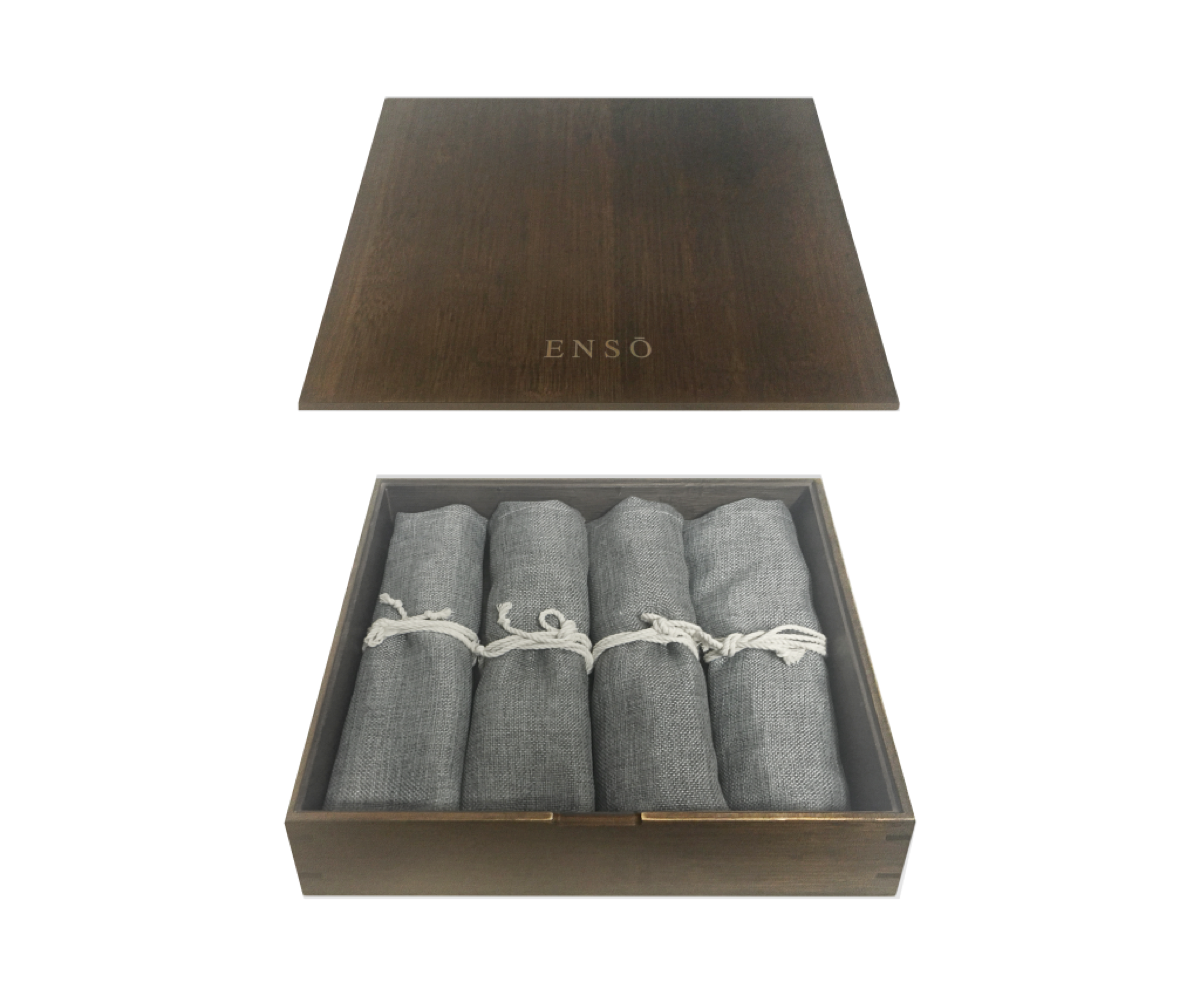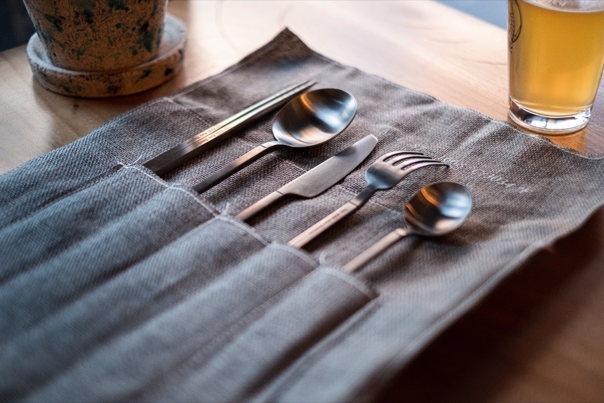 ナチュラルリネン素材のソフトキャリングポーチが、「Ensō 2.0」のカトラリーと合わせ買い限定で支援できます。