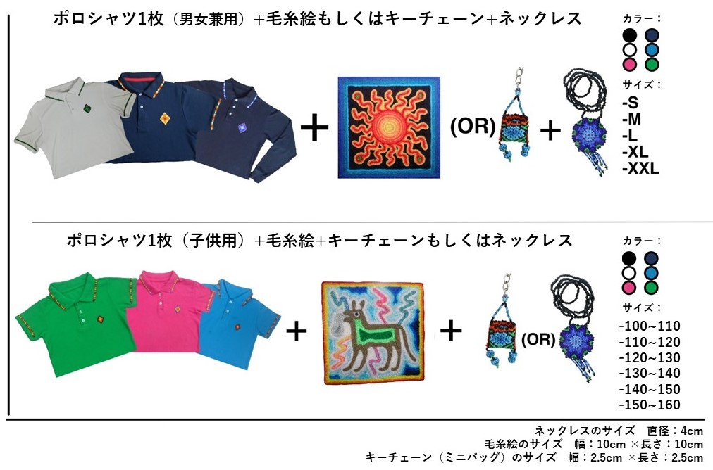 ウイチャル族が作成したポロシャツやアクセサリーにご支援いただけますと、ウイチャル族の職人およびその家族の生活が豊かになります。