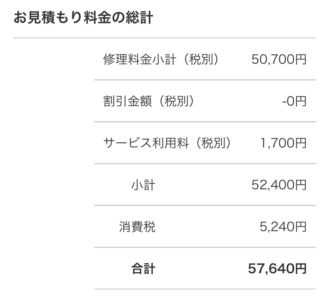 修理費用(見積もり)結果