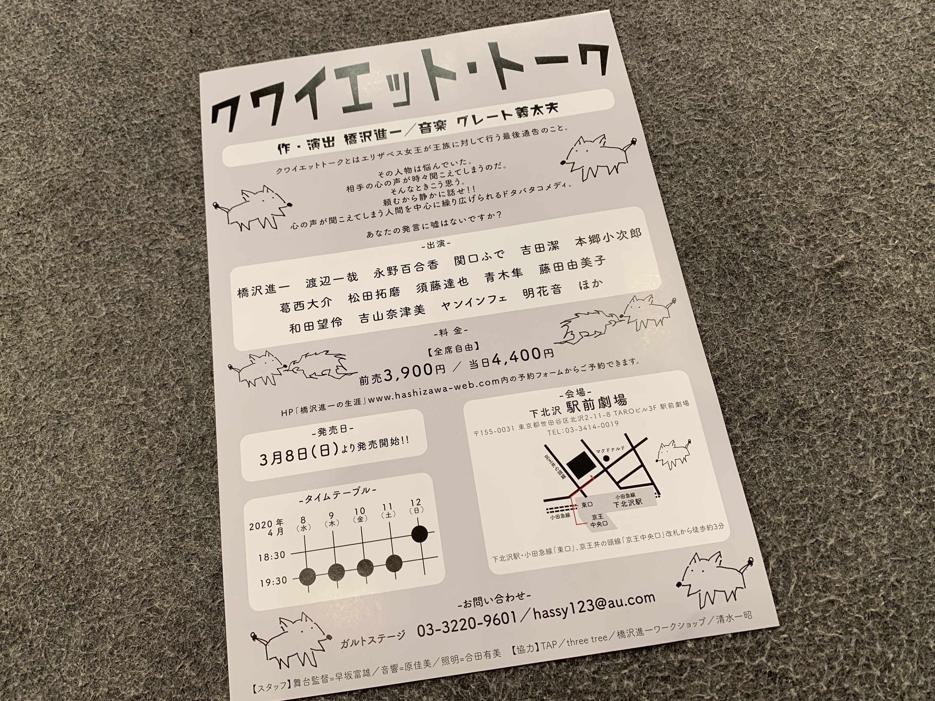 令和2年4月「クワイエットトーク」下北沢駅前劇場(コロナにより延期)