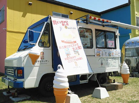 映画の先行カットにも、メガネの少年が赤レンガ倉庫をバックにソフトクリームを食べている描写が有りました。あのソフトクリームは、赤レンガ倉庫のドコで食べられるのでしょう!?先行カットをよ~く見てくださいね!女の子の後ろに注目です。ピンク色の制服をきた女性がキッチンカーらしいものから顔を出している様子が描かれています。函館愛にあふれていますね。