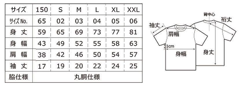 サイズは150/S/M/L/XL/XXLからお選びいただけます。(支援時にプルダウンメニューよりご希望のサイズを選択ください )Tシャツ 5.6oz 綿100% サイズ(150/S/M/L/XL/XXL) メーカー寸法表