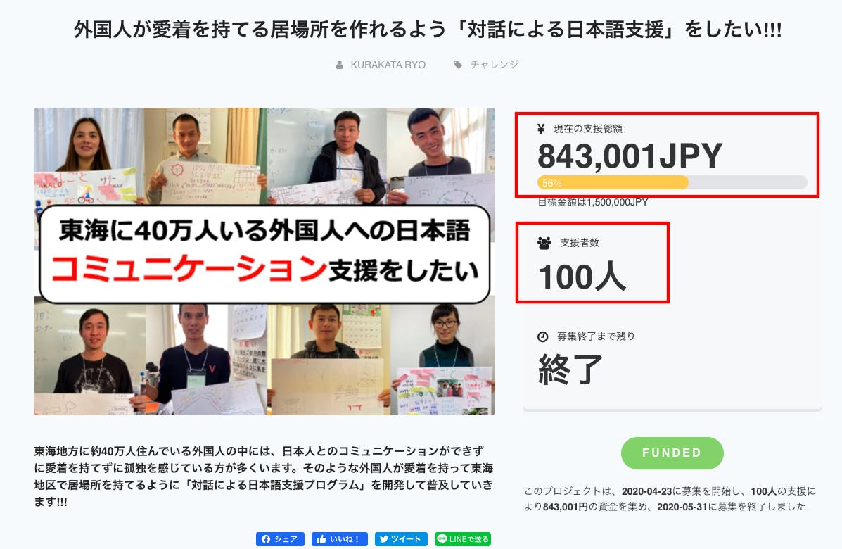 100人行くかハラハラしていましたが、ラスト30秒で100人到達するほど本当にギリギリで目標を達成することができました。本当にありがとうございます。