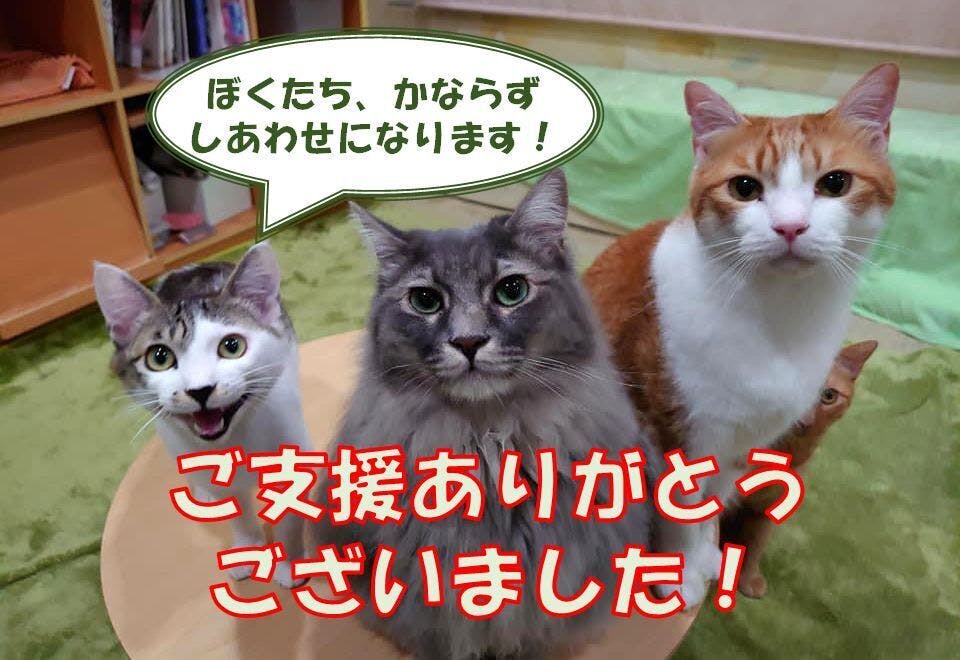 本当に多くの方々のご支援で、うちのニャンズは変わりなく暮らしていけます。今後は皆様のサポートをいただいた猫達が、幸せな良縁を掴めるように見届けてください。