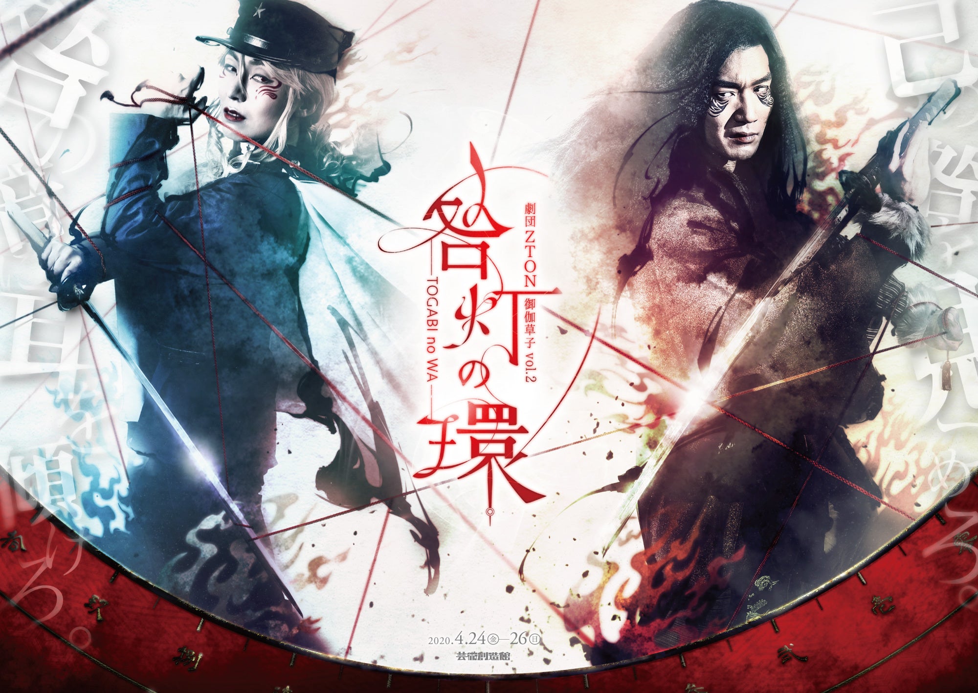 ですが、現在の新型コロナウイルスの影響により、座組・お客様の安心と安全を考えた結果、4月末の新作公演『咎灯の環』は延期することにいたしました。年内の先のスケジュールについても現在検討中です。