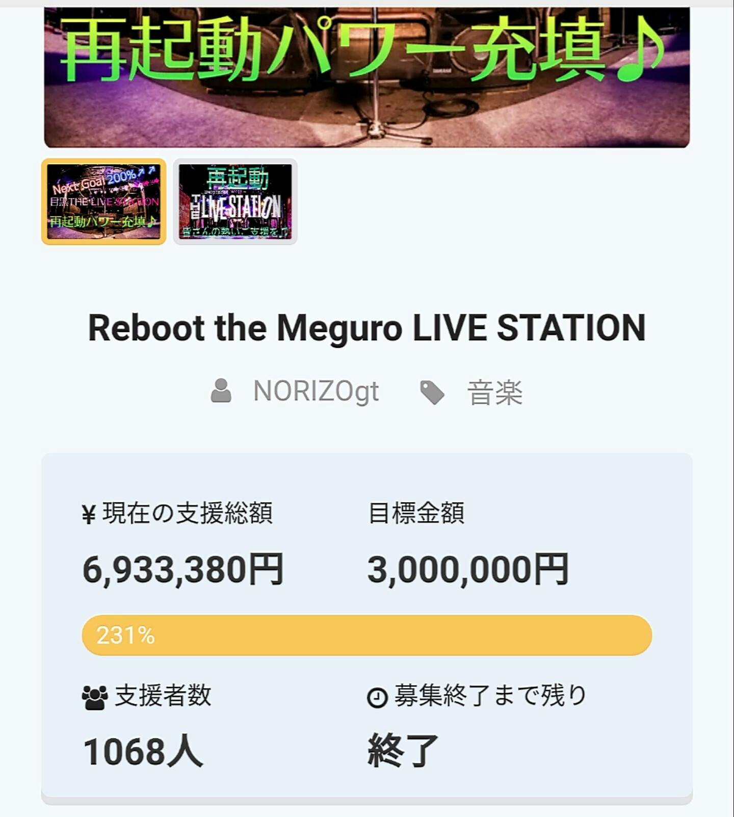 圧倒的大勢様の熱いご支援により、6月9日(ロックの日)終日を持ちまして募集期間を終える事ができました。