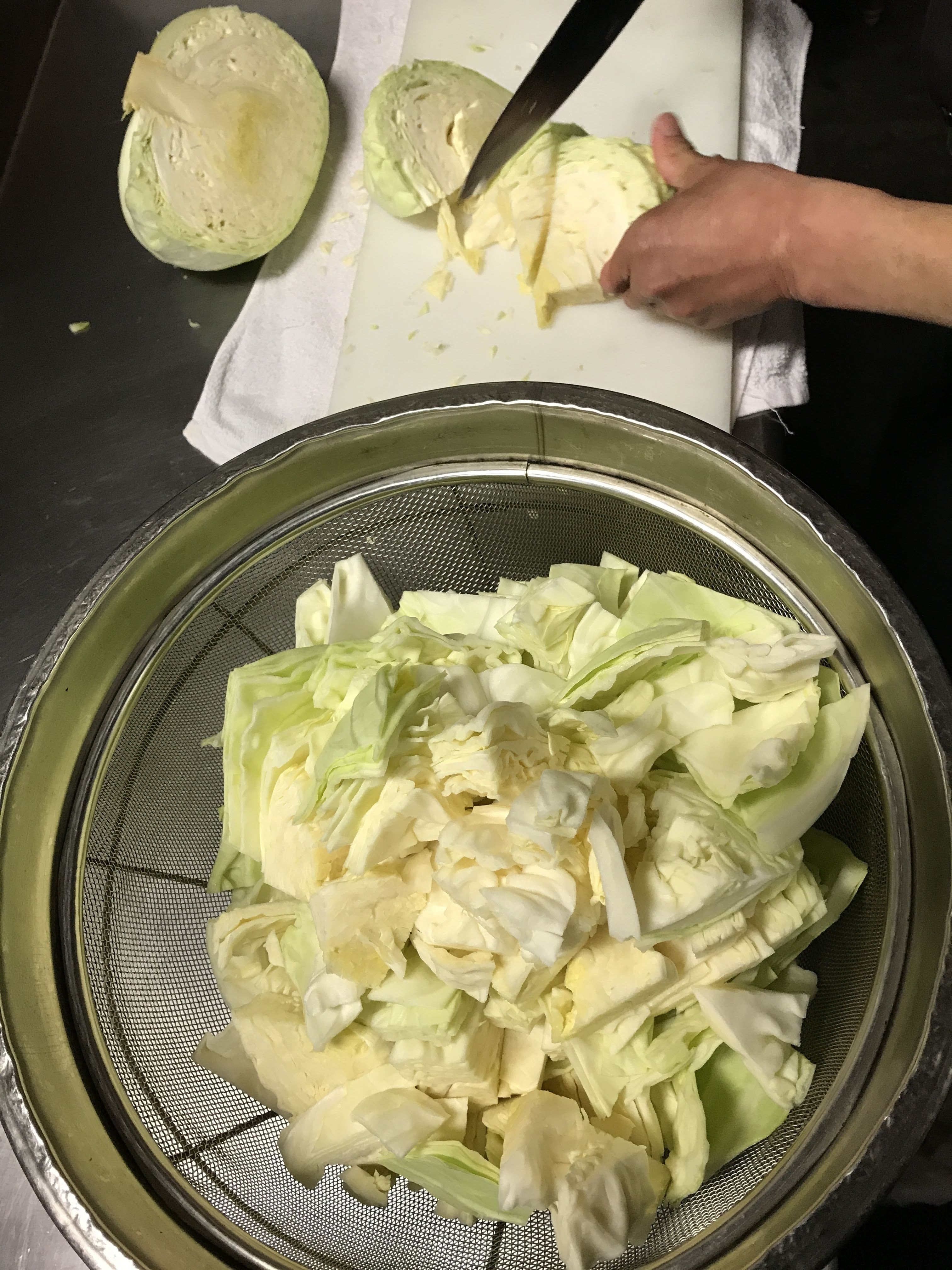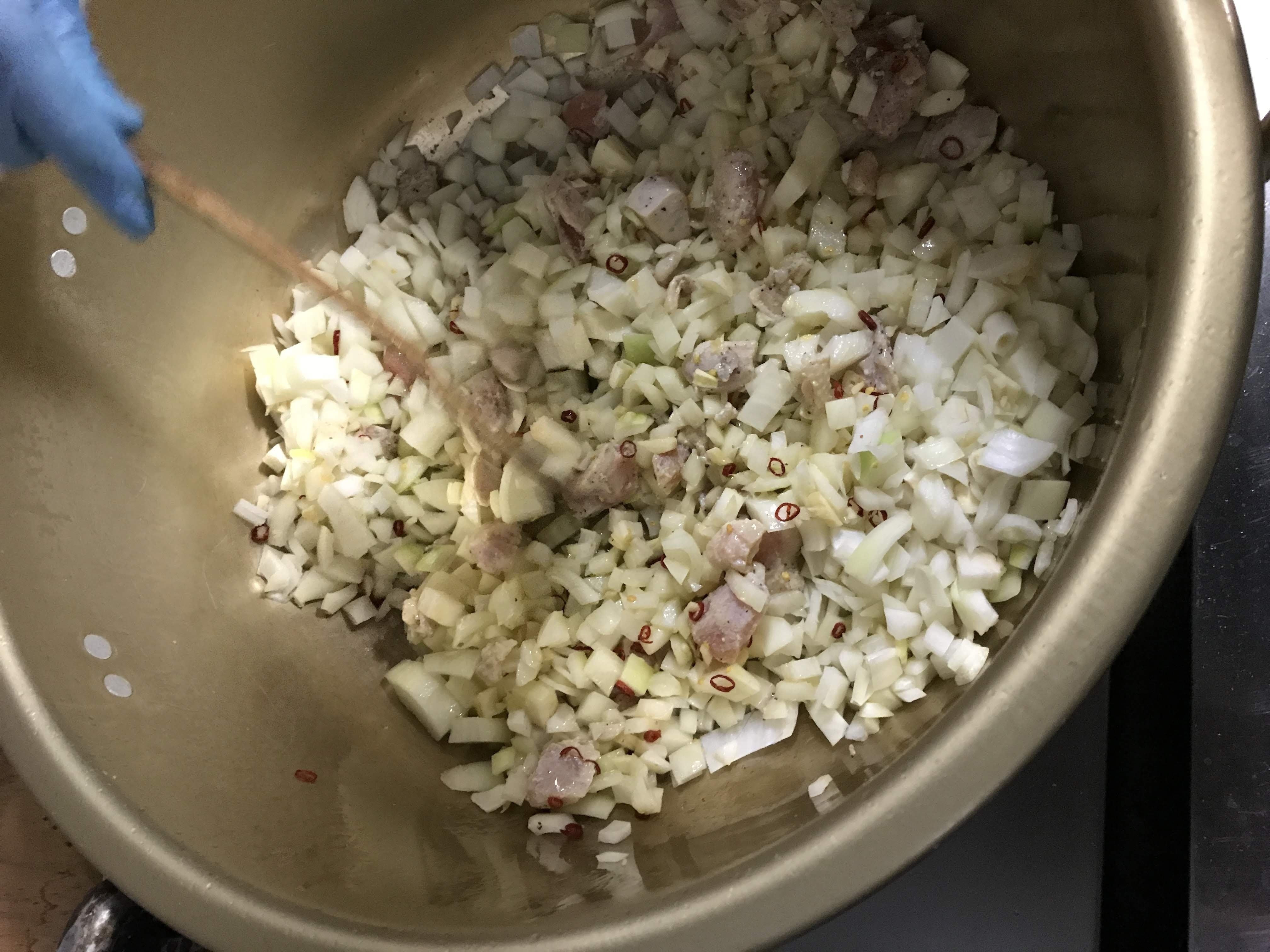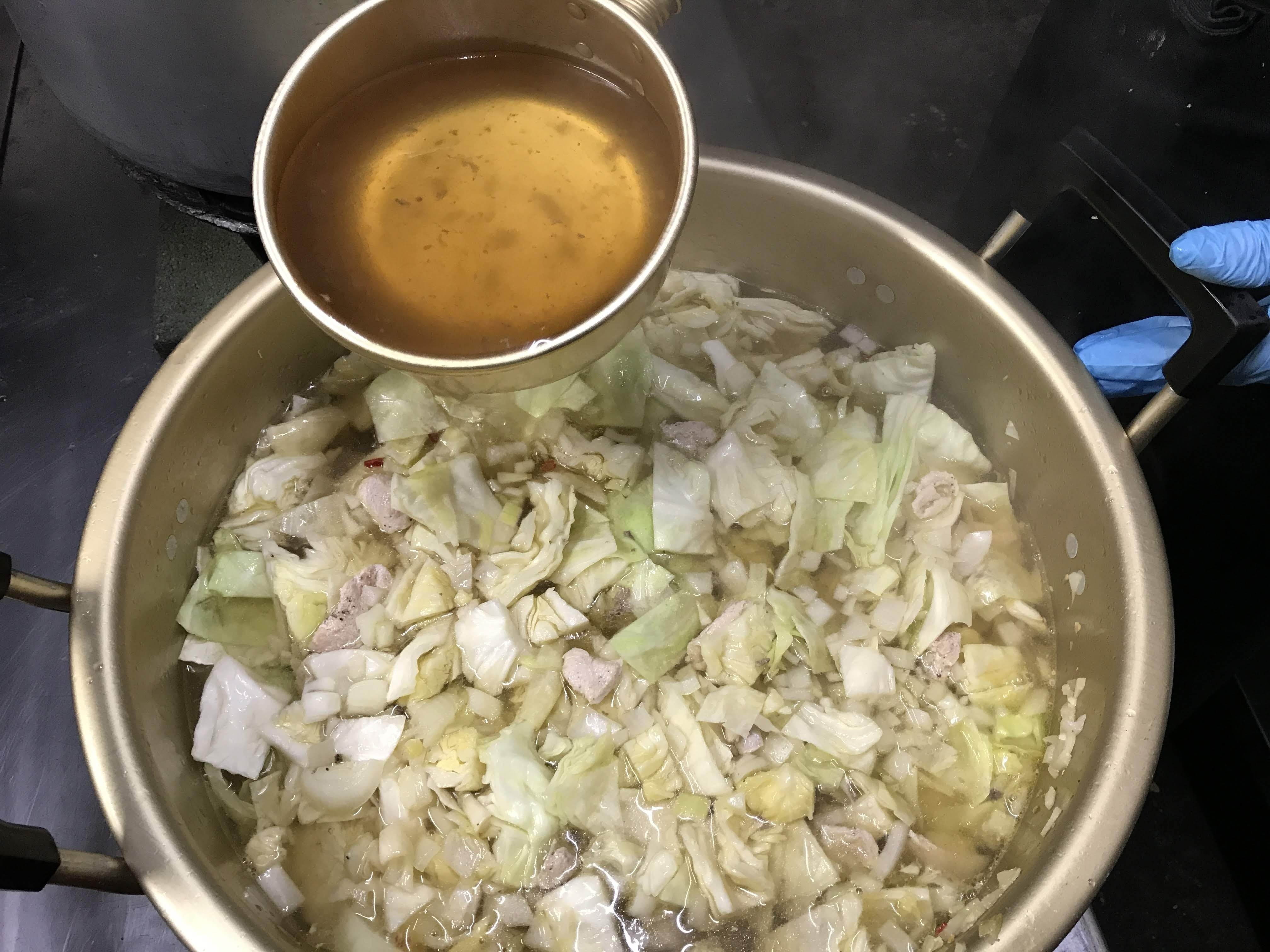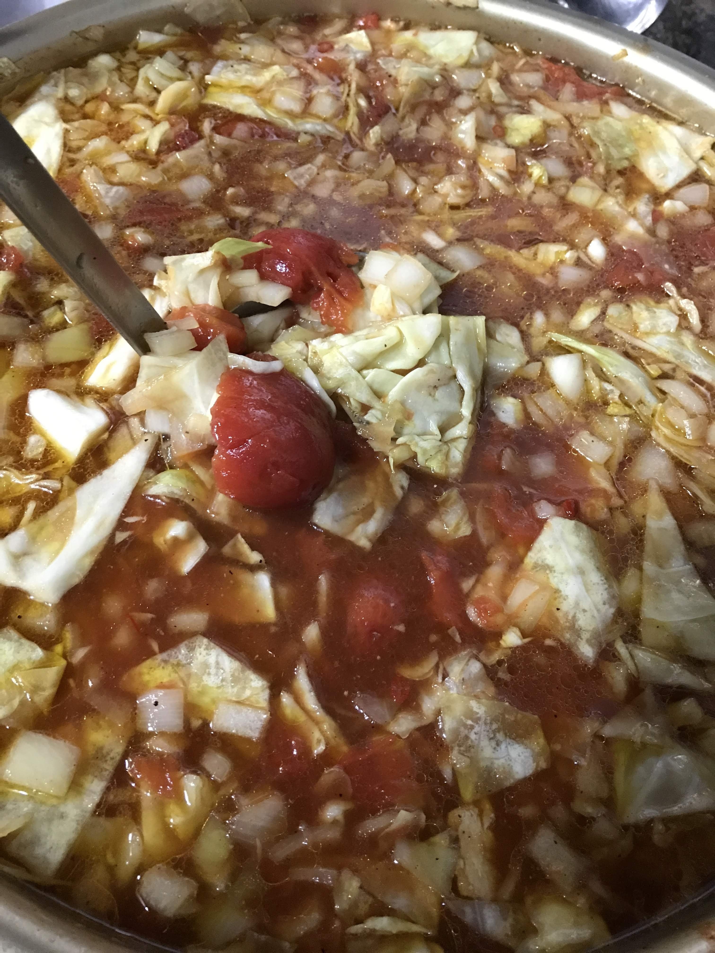 身体に優しい、オリーブオイル、ホールトマトをキャベツ、玉葱、ニンニク、鷹の爪等で