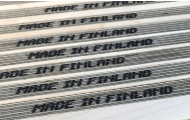 フィンランド産のBaltic Birch Plywoodはバルト海周辺のヨーロッパ北東部地域で自生する白樺のみ使用します。1.5mm、白樺の経木にクロスバンディングで環境にやさしい接着剤で積層製作されました。
