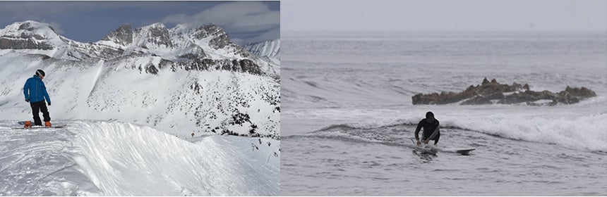 スイッチライディング練習 - レギュラーである場合はグーフィー方向に立ってシミュレーション、グーフィーの場合は反対方向ですべての動作を練習します。