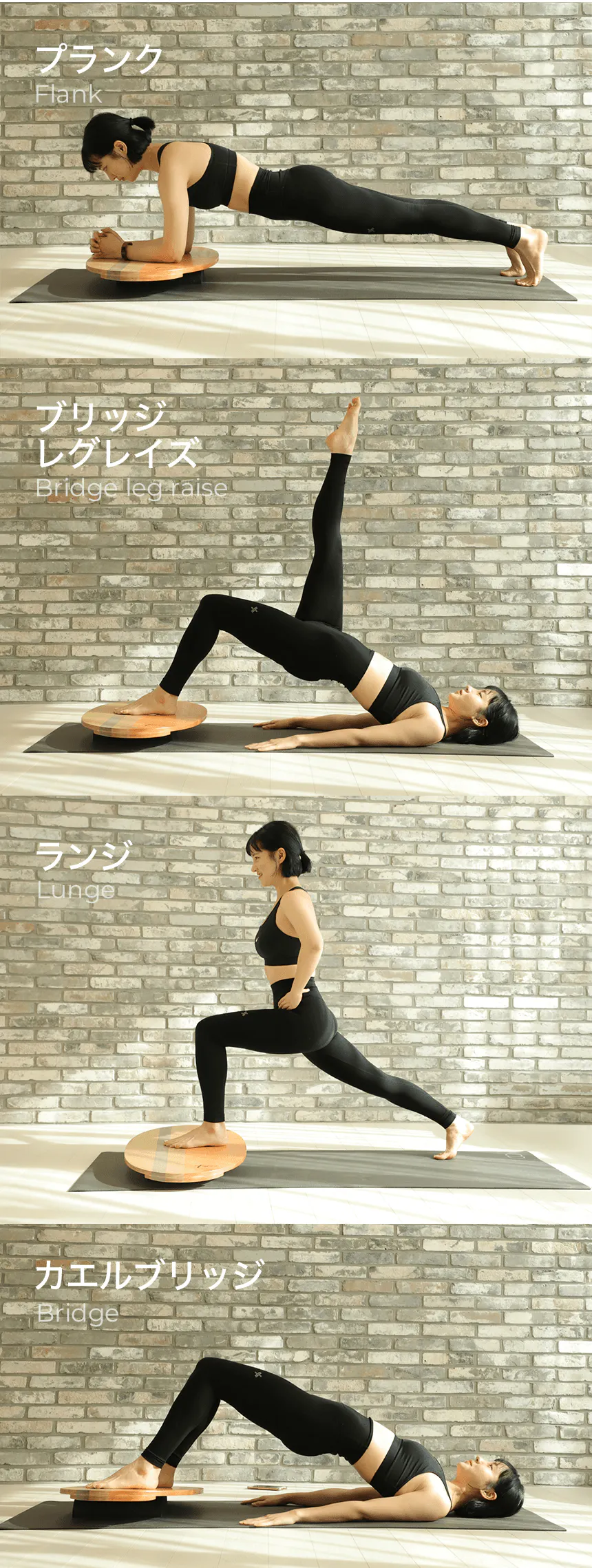 Freeplyボードでプッシュアップを行うと、バランスをとるためにコア、胸、肩、腕の小筋肉をすべて使わなければなりません。簡単ではありませんよね!初めは20秒堪えてみて、時間を徐々に増やしていってください!ヨガやピラティスの動作でストレッチツールとして活用してください。