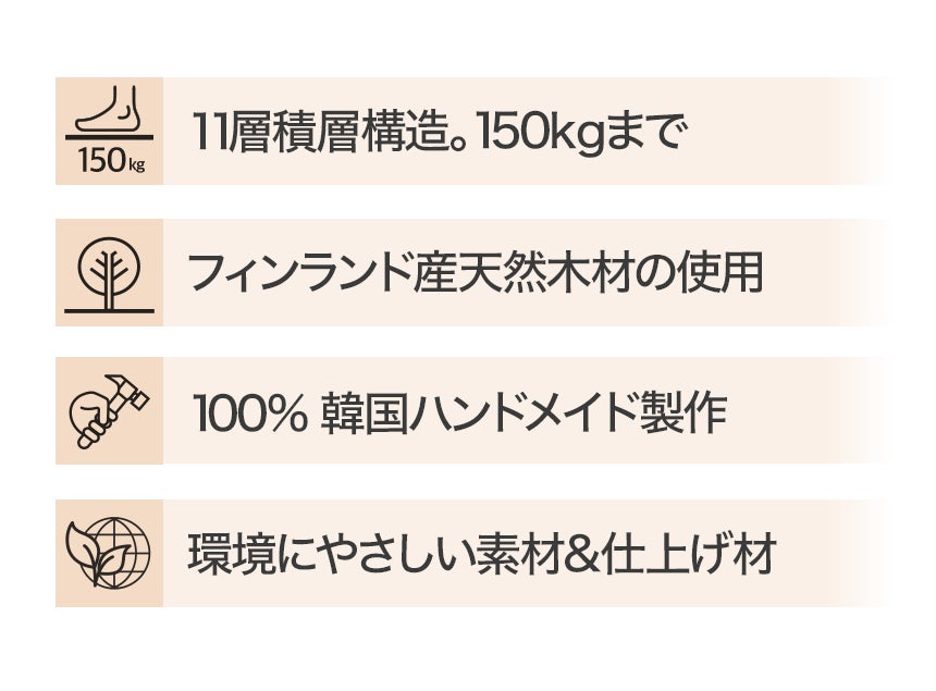 ・本製品は、幼児または子供が触ったり、口付けできる等級の仕上げ材を使用しています。 しかし、お子様が直接使用できるように開発された製品ではありません。 お子様の場合、必ず保護者の監督の下でご使用ください。