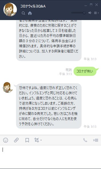 ・新型コロナウィルスの問題に特化したLINE動作のAIチャットボットです。