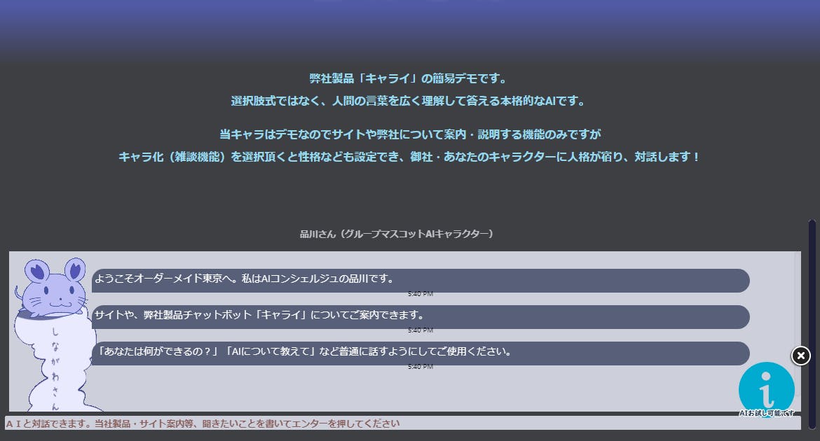 現在はLINEで動くチャットボットソフトウェアです。