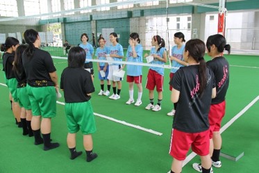 ソフトバレーボール試合開始前に出場するチーム一人一人が自己紹介をかねて、